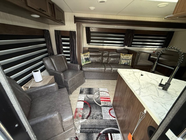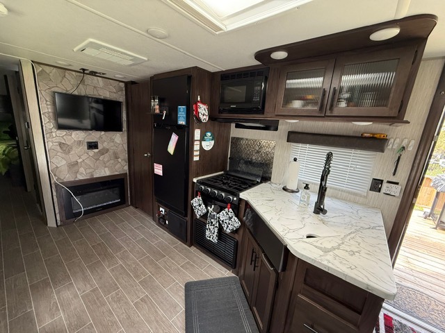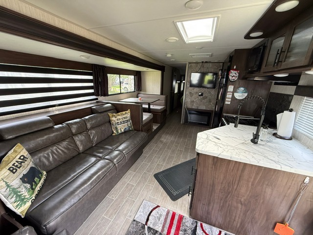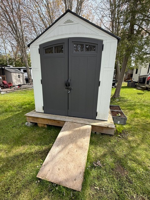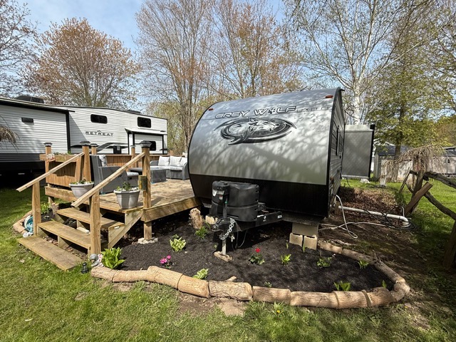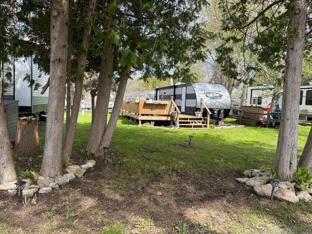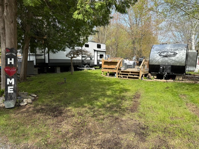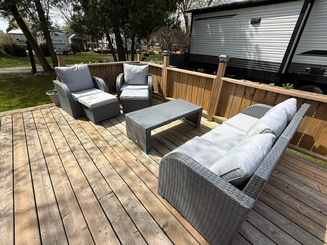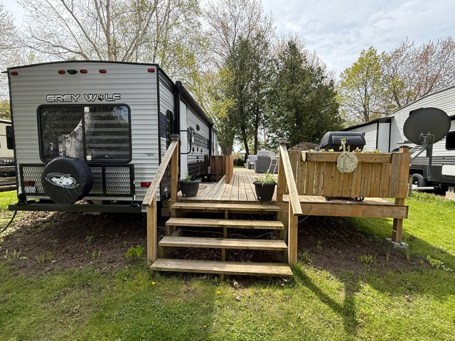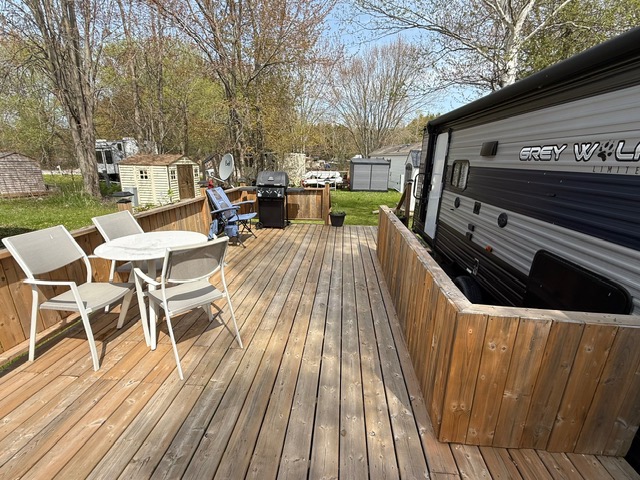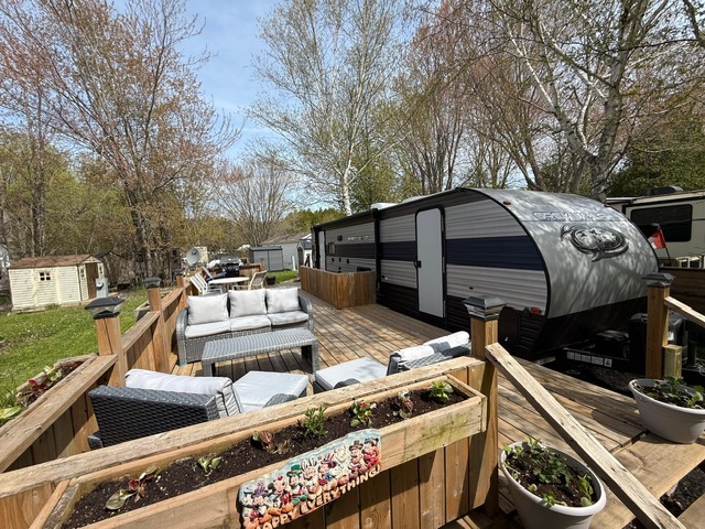 This beautiful turn key trailer is located on premium Site 78, a sunny lot, with some cedar trees at the front of the site to create a lovely private space. Relax and enjoy the outdoors on the comfortable conversation set on the deck, or sit around the fire pit at the back of the site. This one bedroom unit would be perfect for an individual or couple, but will definitely accommodate children or guests as well, as the couch and dinette can be converted to sleeping spaces. Outside features include patio furniture, bbq, shed, etc. Gardens have just been planted for the season! 2025 season fees paid in full. Contact us today to set up a viewing!